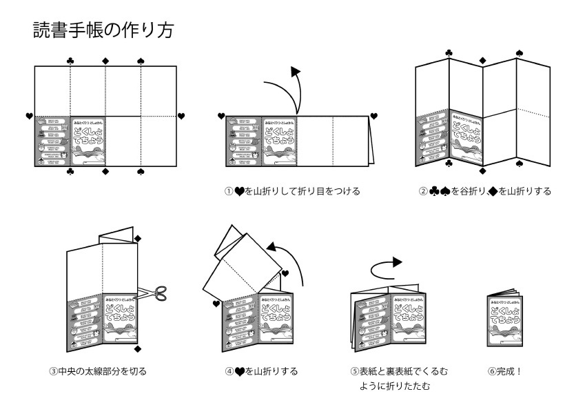 - このページからダウンロードしA4判の紙に印刷したもの、または図書館で配布している読書手帳を用意します。